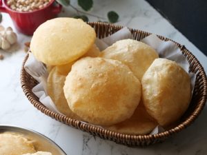 -In a wok,heat cooking oil (160-170C) & deep fry bhatura on medium flame until it puffs up & golden.