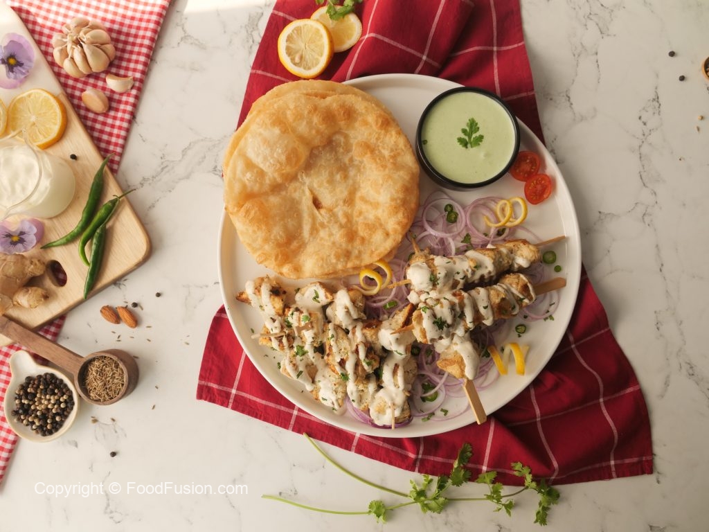 Amazing Malai Tikka Boti Bites with a creamy garlic sauce to upgrade the taste. #HappyCookingToYou #FoodFusion #OlpersCream