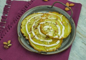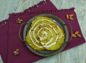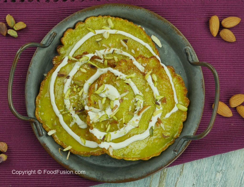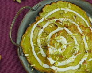 Cream aur badam & pista sa garnish ker ka serve karein.