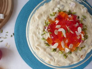 -In a serving dish,drizzle mango puree,add a layer of prepared mango cream & spread evenly.