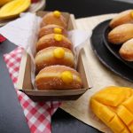-Fit a piping bag,fill with prepared mango curd into each donut & serve! (Makes 10-12)