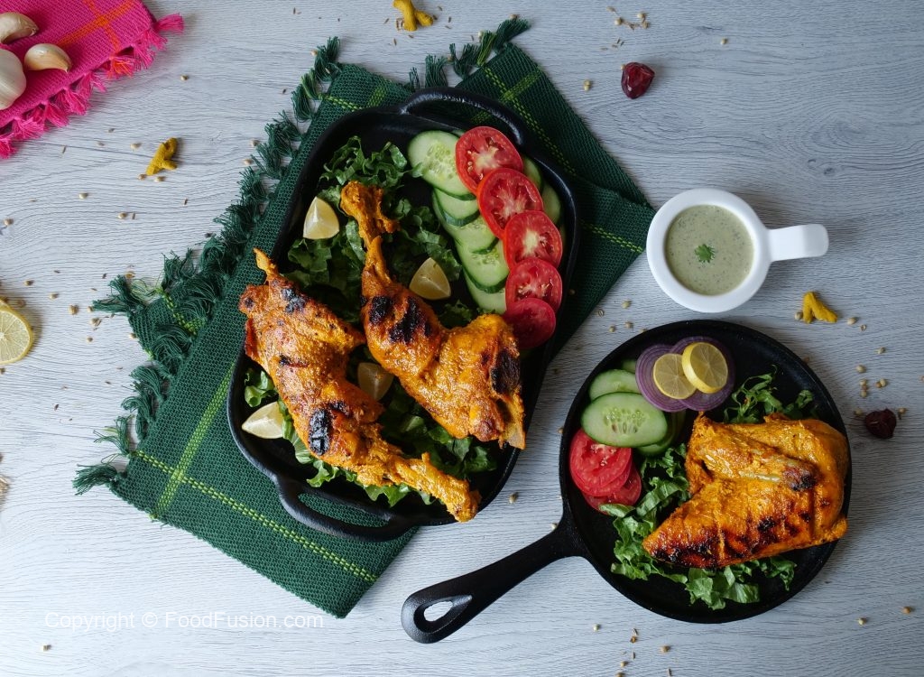 On a grill pan,add cooking oil & grill chicken on medium high flame from all sides until done and apply cooking oil in between.
