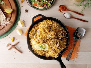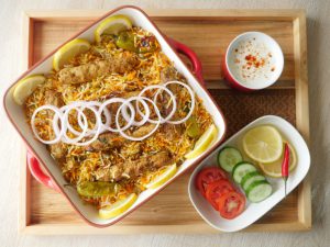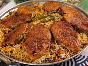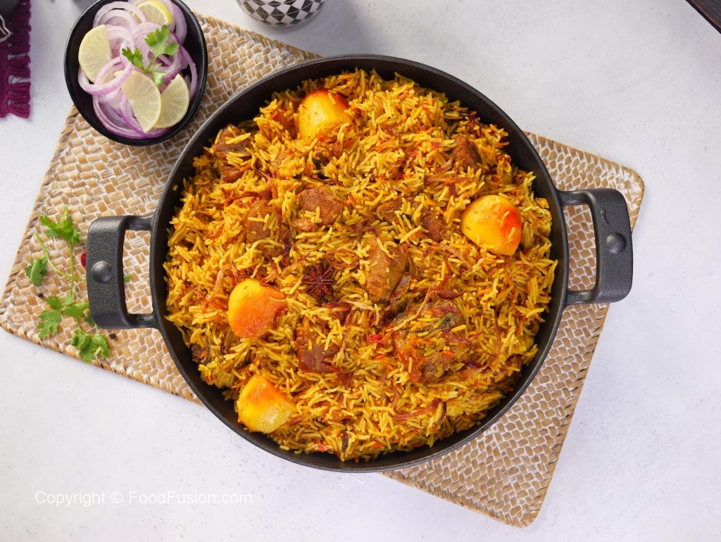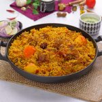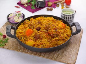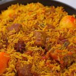 -Orange food color aur fried pyaz dal kar kitchen cloth aur lid se dhak dein aur low flame par 10-12 minute kliya steam cook ker lein.