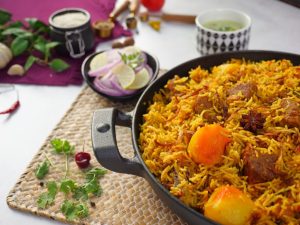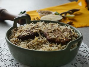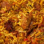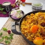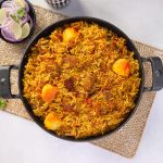 -Add orange food color,fried onion,cover with kitchen cloth & lid and steam cook on low flame for 10-12 minutes.