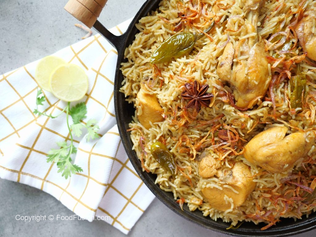 -Add fried chicken & mix well,add water,mix well & bring it to boil,cover & cook on low flame for 10-12 minutes.