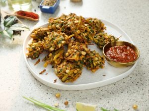 -Add prepared pakora batter & mix well.