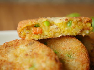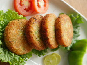 Mixture ka 8-10 kebabs bana lein,prepared batter mein dip karein phir bread crumbs mein coat ker lein.