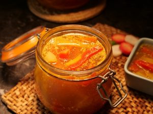 -Once pickle (achar) is ready it can be stored for up to 2 weeks on kitchen counter & up to 3 months in refrigerator.
