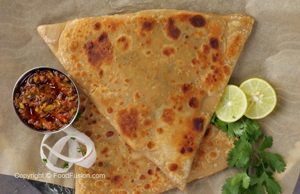 -Heat griddle & fry paratha on medium flame from both sides with clarified butter (makes 5).