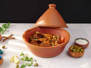 -Add onion,garlic,pickled lemon (chopped),tomato pureed,fresh parsley,dissolved saffron,chicken stock,cover & cook on low flame for 25-30 minutes.