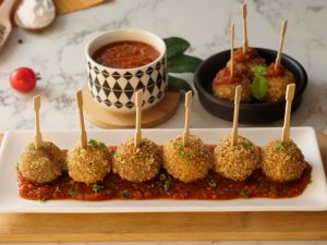 Mozzarella Balls with Marinara Sauce to go with it. A perfect game night snack for you to enjoy with family. #HappyCookingToYou #FoodFusion #Dashi
