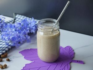 In blender jar,add soaked mulberries,milk and blend well & serve!