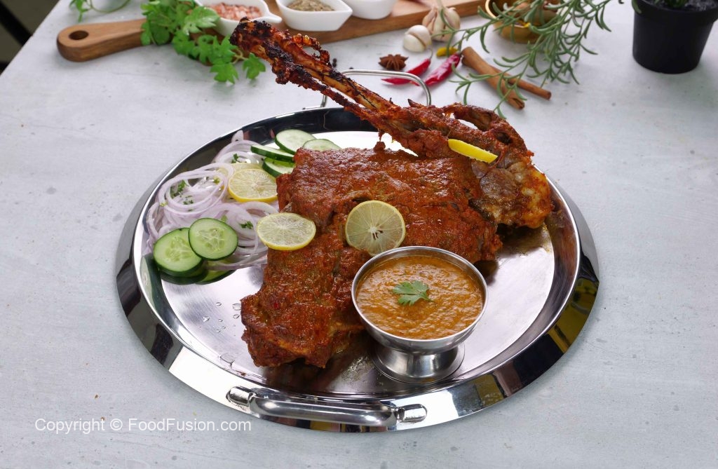 -Mutton leg dal ker properly coat ker lein,cing film sa cover karein aur 8-10 hours or overnight refrigerator kliya marinate ker lein.