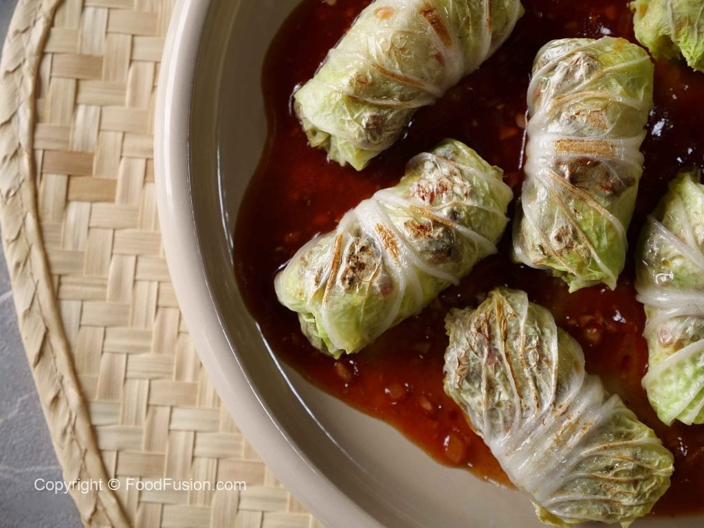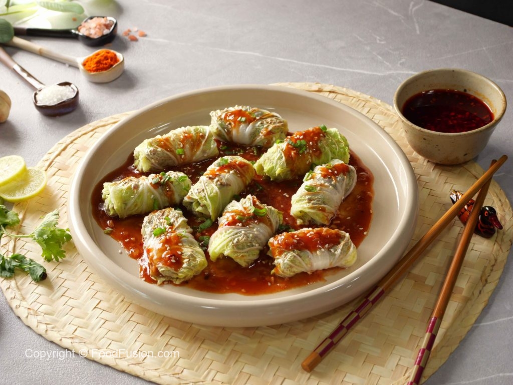 -On griddle,add cooking oil,place napa cabbage rolls & fry on medium flame from both sides until golden.