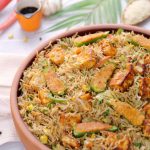 -Add vinegar,soy sauce,dark soy sauce,black pepper powder,pink salt,white pepper powder,spring onion & mix well.