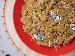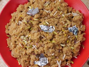 -Garnish with almonds,pistachios,edible silver leaf & serve!