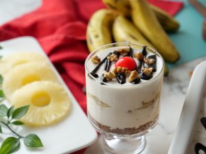 Add banana slices,pineapple chunks,olper’s whipped cream layer & refrigerate until chilled (2-3 hours).