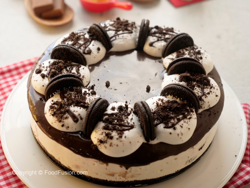 Make the most of this festive season with this No bake Oreo Chocolate Cheese Cake recipe. #HappyCookingToYou #FoodFusion #OlpersCream