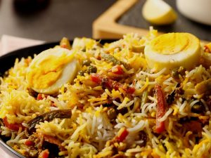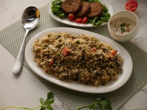 -Garnish with reserved carrots & raisins,fried almonds & serve with salad & raita!