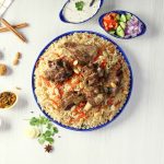 -Add water,chicken cube,mix well & bring it to boil,cover & cook on low flame until meat is tender (40-50 minutes) then take out mutton pieces & set aside.
