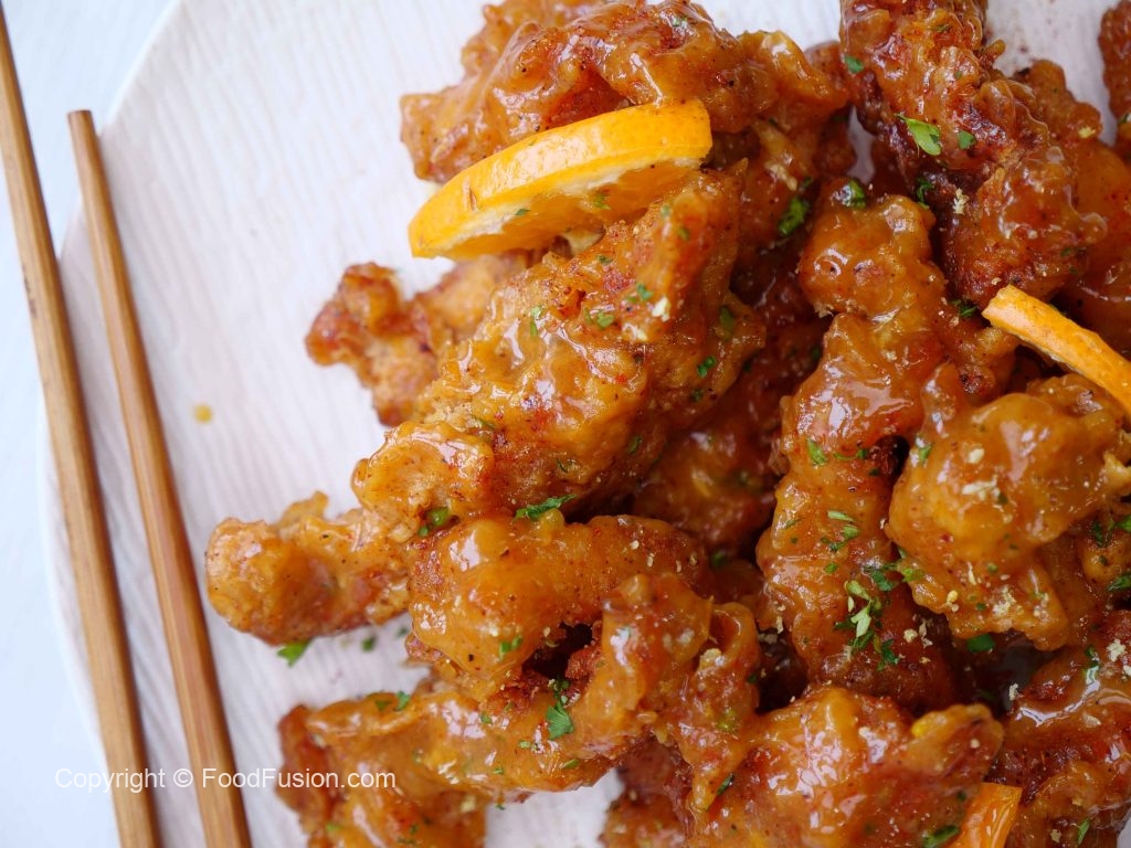 -In a wok,add lemon & orange juice (1 Cup),brown sugar,remaining spice mix (1 tbs),lemon zest (1/4 tsp),orange zest (1 tsp),cornflour & whisk well.