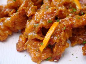 -Turn off the flame,add fried or air fried chicken & coat well.