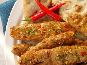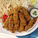 -Apply prepared spicy butter on both sides of seekh kababs & continue cooking on grill+combination for 5-6 minutes or until kababs are done (makes 12-14).