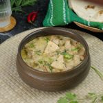 -Add milk,cumin seeds,white pepper powder,black pepper crushed,garam masala powder,nutmeg powder,desiccated coconut,mix well & cook for 4-5 minutes.