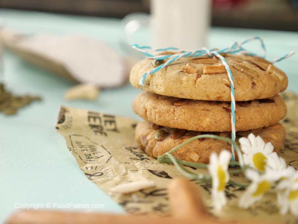 -Chota doigh lein (50g) aur ball bana ker gently press karein aur cookie ki shape bana lein phir cookie ki ek side ko mixed nuts ka upper press ker lein (makes 15).