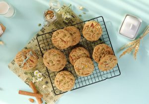 -Cookies ko baking tray lined with baking paper per rakh dein.