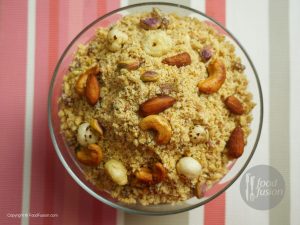 In food chopper,add all fried nuts and coarsely chop fried nuts,set aside.