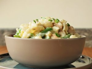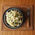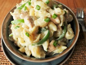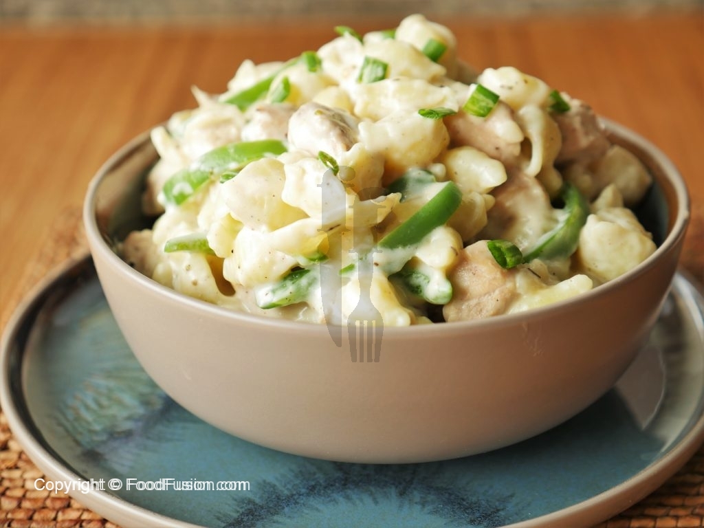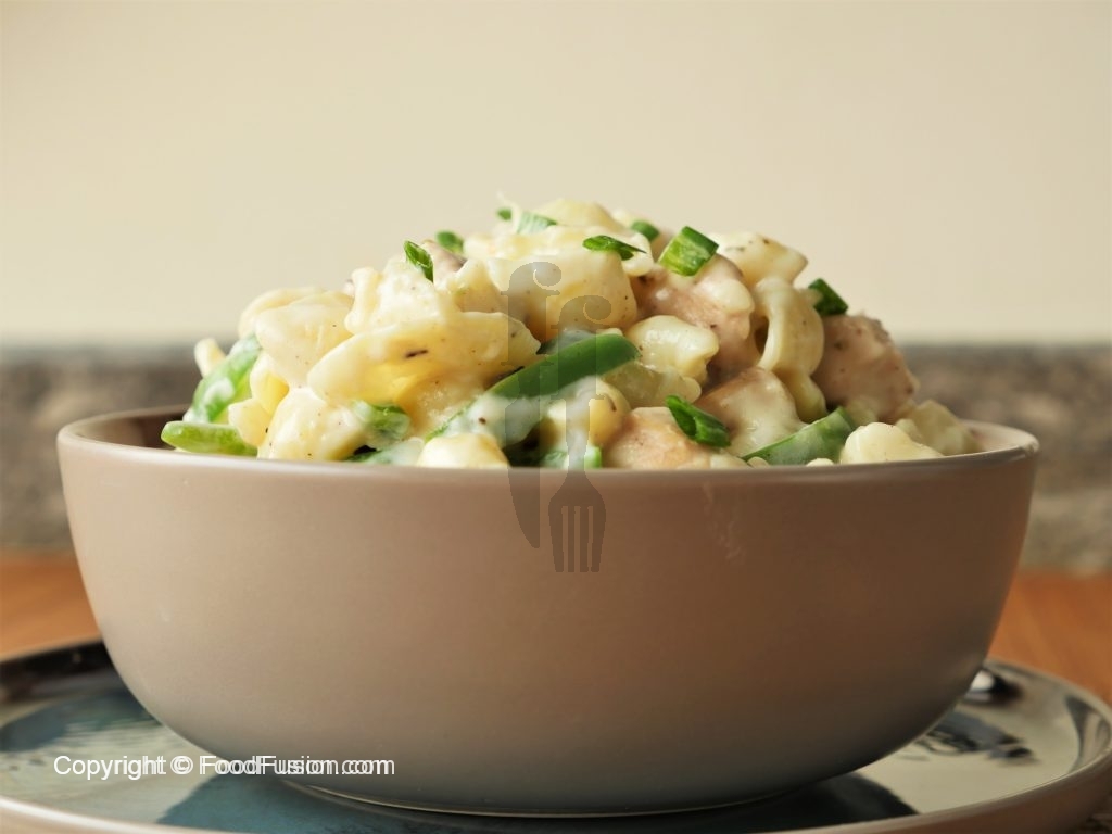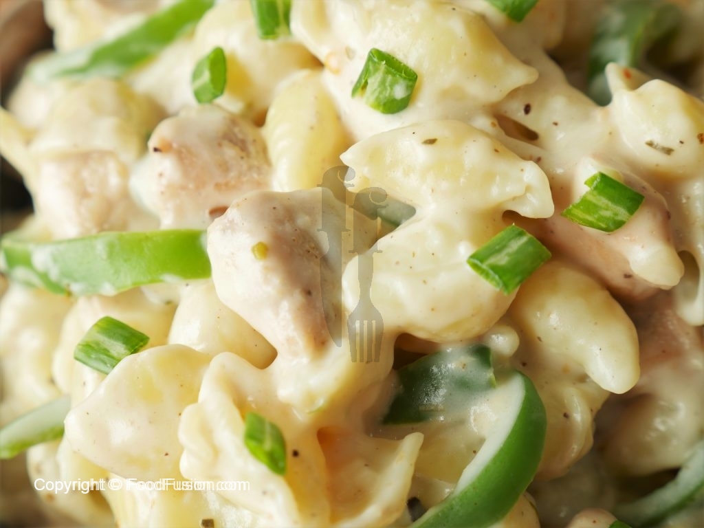 White sauce mein stir-fried vegetables,cooked chicken aur boiled shell pasta dal ker ache tarhan mix ker lein.