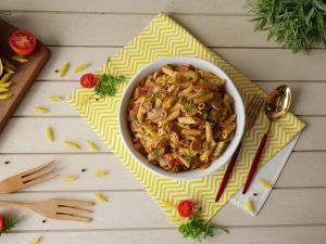 • Penne pasta 300g (boiled as per pack’s instructions)