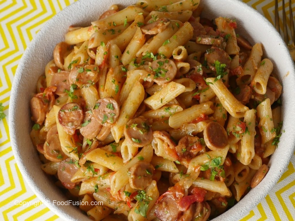 Penne Pasta with Sausages a quick and easy hunger solution #HappyCookingToYou #FoodFusion #Monsalwa