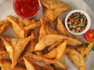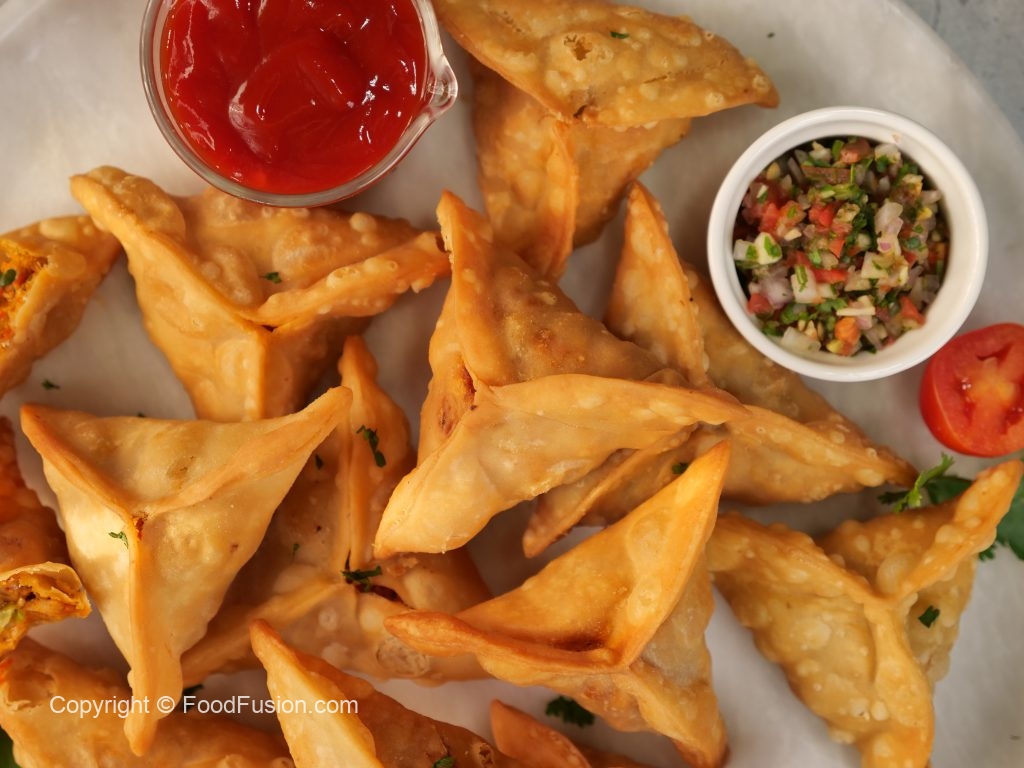 -Add prepared filling,apply water,fold & seal corners to make a samosa (makes 25-30).
