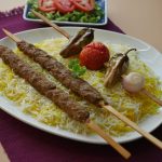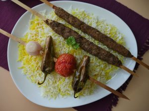 Serve saffron rice with kabab.