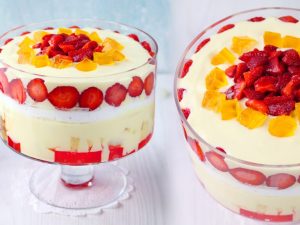 -Bowl mein whipping cream aur icing sugar dal dein aur stiff peaks form ho janay tak ache tarhan beat ker lein.