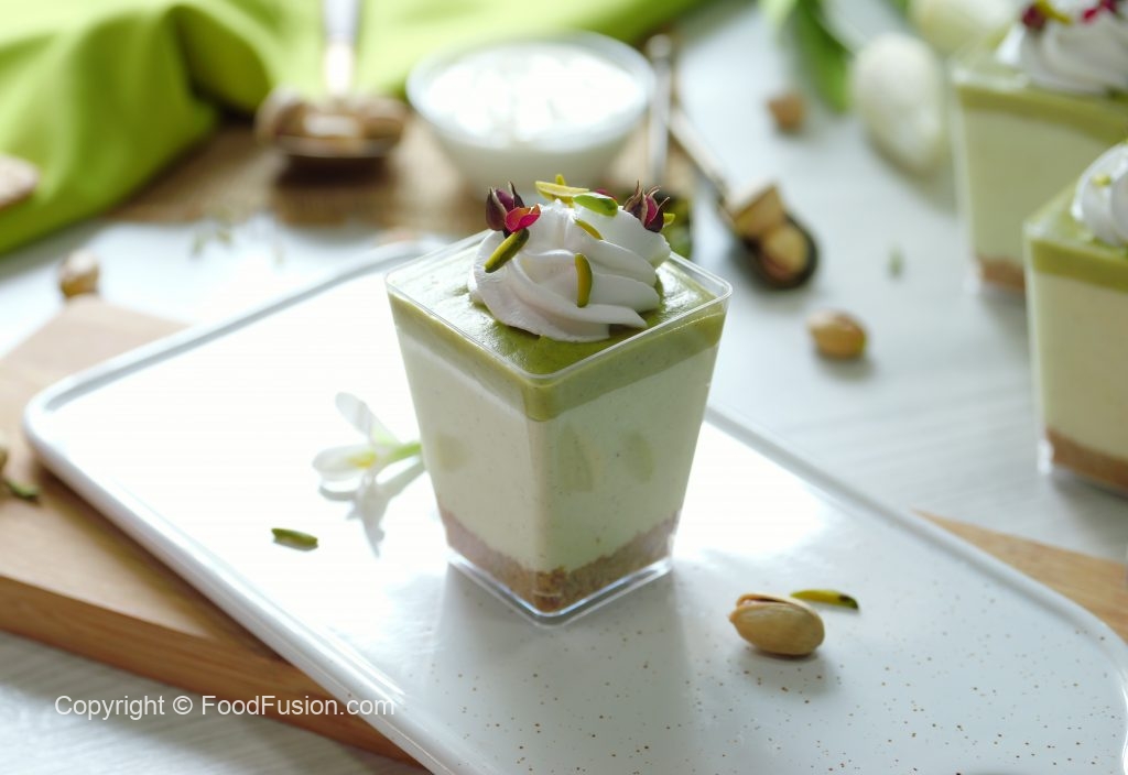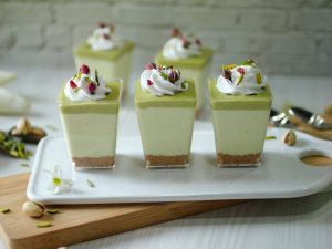 -Pipe out prepared cheesecake layer & prepared pistachio cream.
