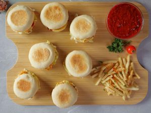 -Cut pita bun from center,add honey mustard sauce,iceberg lettuce,crispy chicken,chilli garlic sauce, cover with top bun with honey mustard sauce (makes 12).