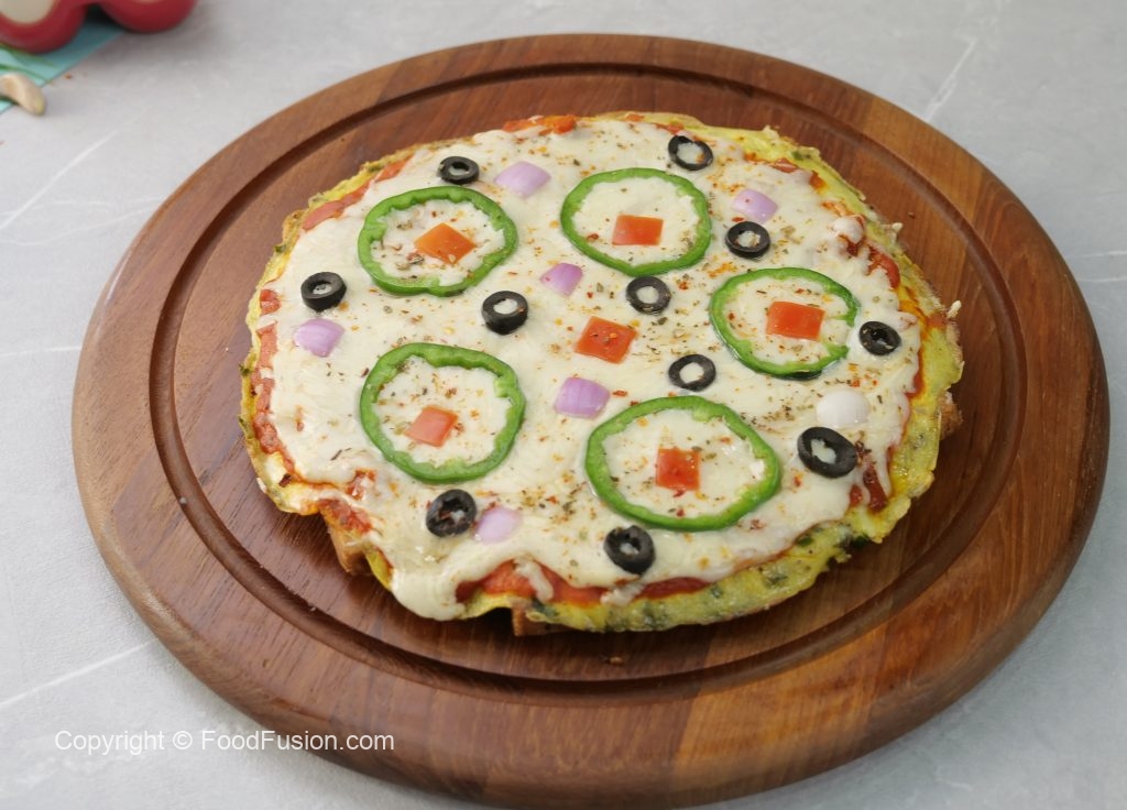 -Place bread slices on it when the eggs are mostly set from the bottom but remains liquid on top.
