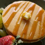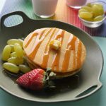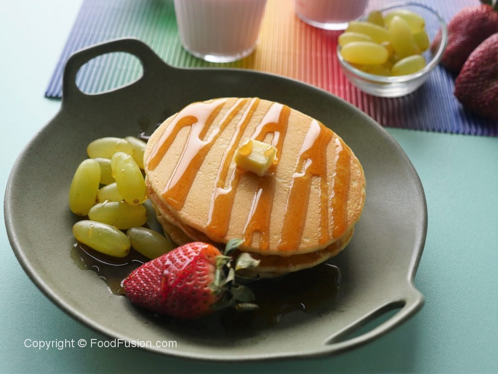 Grease frying pan with butter and pour ¼ cup & 1 tbs of prepared batter and cook on low flame from both sides until done (Flip when bubbles rise on the surface approx. 1 minute each side) makes 4 large & 10 small pancakes.
