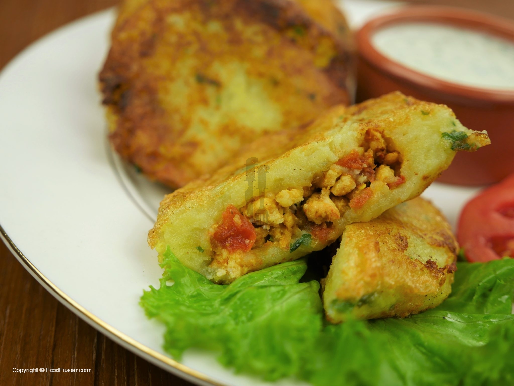 This is probably on of the simplest Potato Cuttlets with chicken filling. Its also called Alu Tikki in urdu and Hindi. The plain version of potato cutlets does not have any filling. You can experiment and enjoy!.