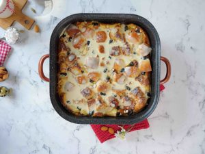 -Before baking add black raisins, almonds, & place in a pre-heated baking oven & bake at 180 for 35-40 minutes with a lower grill.