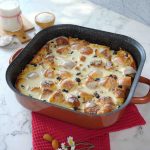 -Cut bread roll in 1 inch cubes & add in a baking pan (10x10 inches), pour prepared egg mixture.
