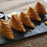 Fill the cone with prepared stuffing,apply water on the edges and bring the edges together and seal the edges properly.