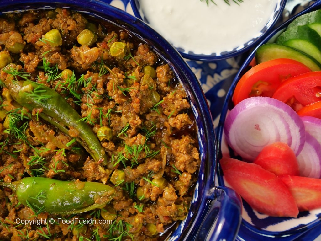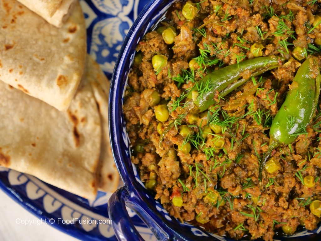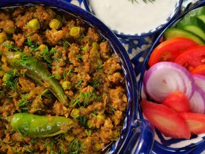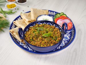 -In a serving dish add soya qeema matar, garnish with dill. Serve with chapati, yogurt, & salad.
