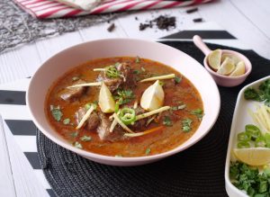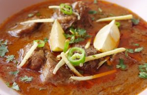 In serving dish,add nihari,cilli oil (tarri),ginger,green chilli,fresh coriander,lemon & serve!