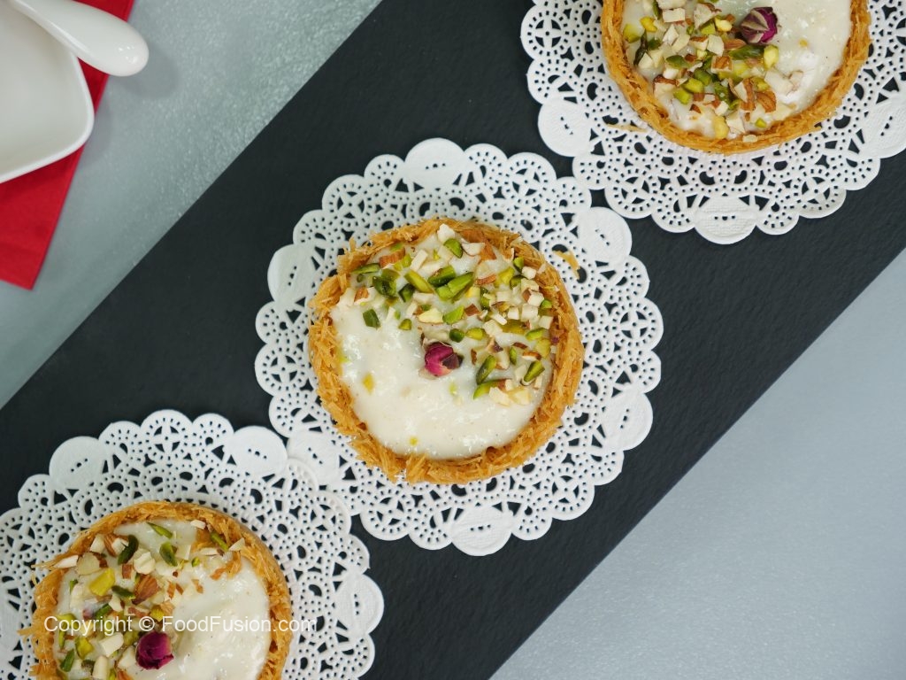 -In vermicelli bowl,add prepared rabri & garnish with mixed nuts,rose buds & serve (makes 7-8).