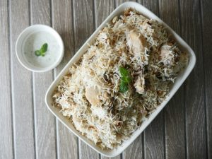-Green chillies, orange food color, fried onion, lemon slices, fresh coriander, mint leaves dalain, phir kitchen cloth aur lid se cover kar ke dum par 10-12 minutes paka lein.