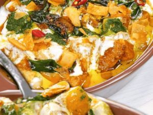Garnish with reserved fried garlic,green onion leaves & serve with boiled rice.